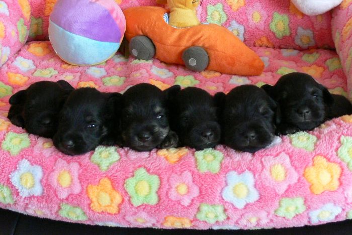Unser M Wurf ist geboren am 27.3. der erste Wurf von Chelines Max Facttor in Deutschland 3 Rüden 2 Hündinnen