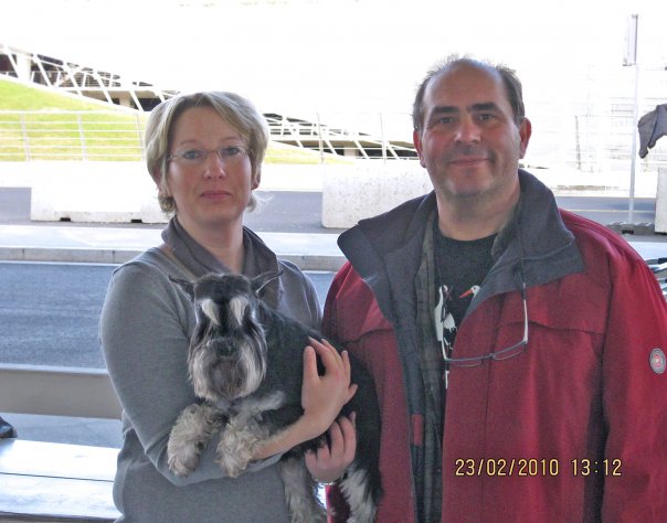 Foto Bilbao Airport Züchter Alberto Velasco (Chelines Kennel), übergibt mir Max