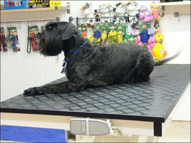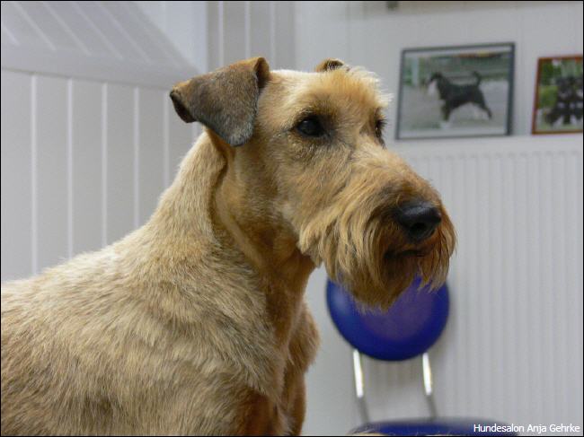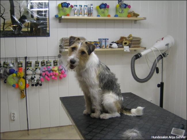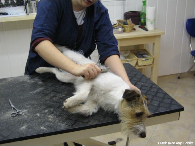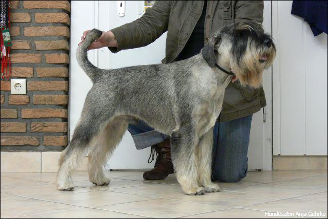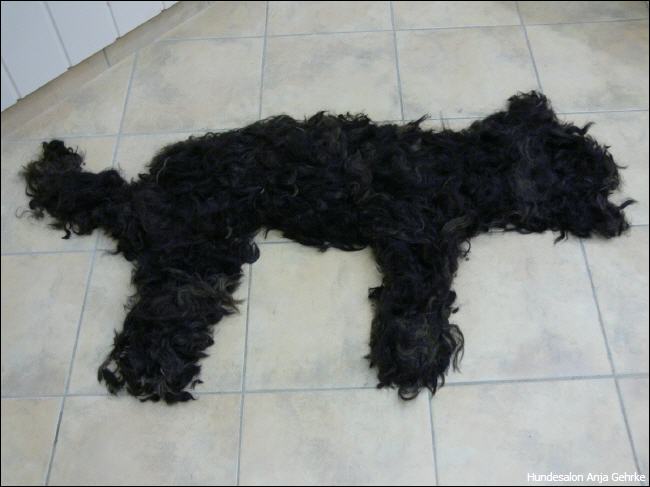 Joker Primero vom Fussenberg Getrimmt für die nächste Ausstellung. Er wird nach der "Rolling Coat" Methode getrimmt, damit er das ganze Jahr über ausgestellt werden kannn. |