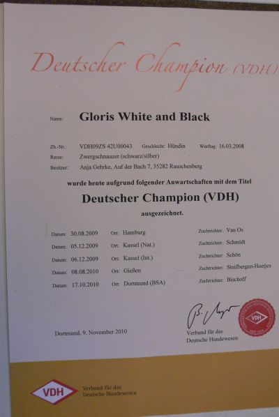 meine Hündin Gloris White and Black Lucy ist Bundessieger 2010