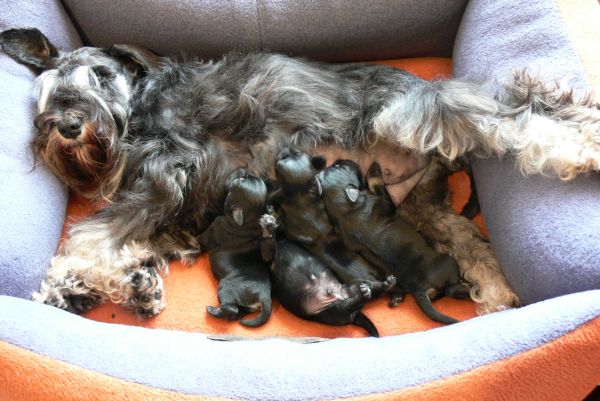 , sie kümmert sich rührend um Ihre ersten Welpen