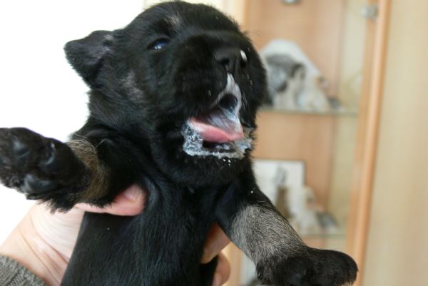heute sind die Welpen das erste mal entwurmt worden und wie man sieht hat es den kleinen gar nicht gefallen, aber es muß ja sein